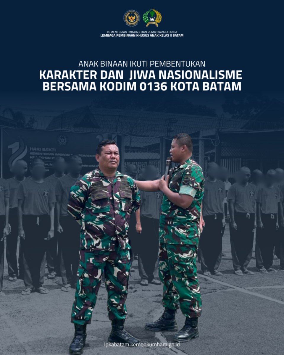 ,Senin 24 November 2025 — Anak binaan Lembaga Pembinaan Khusus Anak (LPKA) Batam mengikuti kegiatan pembekalan wawasan kebangsaan (Wasbang) dan pelatihan kedisiplinan yang diberikan oleh anggota Kodim 0316/Batam. Kegiatan ini bertujuan memperkuat karakter, menumbuhkan jiwa nasionalis, serta menanamkan sikap disiplin dalam kehidupan sehari-hari selama menjalani masa pembinaan. Kegiatan dibuka oleh Kepala LPKA Batam, Faizal Gerhani Putra, yang dalam sambutannya menyampaikan rasa terima kasih kepada jajaran Kodim 0316/Batam atas dedikasi dan kepedulian terhadap pembinaan anak binaan. “Terima kasih kepada rekan-rekan Kodim 0316 Batam yang telah bersedia meluangkan waktu untuk memberikan materi wawasan kebangsaan. Kami berharap hal ini memberikan dampak positif bagi anak binaan dalam proses pembinaan karakter mereka,” ujar Faizal.